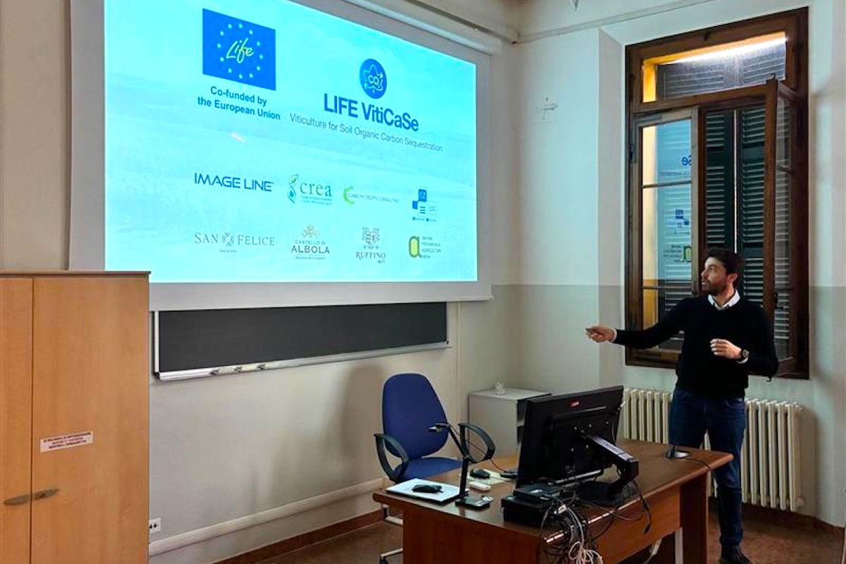 Durante l’incontro, Mongardi ha presentato gli obiettivi e le azioni di LIFE VitiCaSe, un progetto europeo che mira a supportare le imprese vitivinicole nell’adozione di pratiche sostenibili e innovative. Tra i temi trattati: il ruolo della digitalizzazione nella gestione aziendale, l’efficienza nell’uso delle risorse, la riduzione dell’impatto ambientale e l’importanza di monitorare il ciclo del carbonio in vigneto.